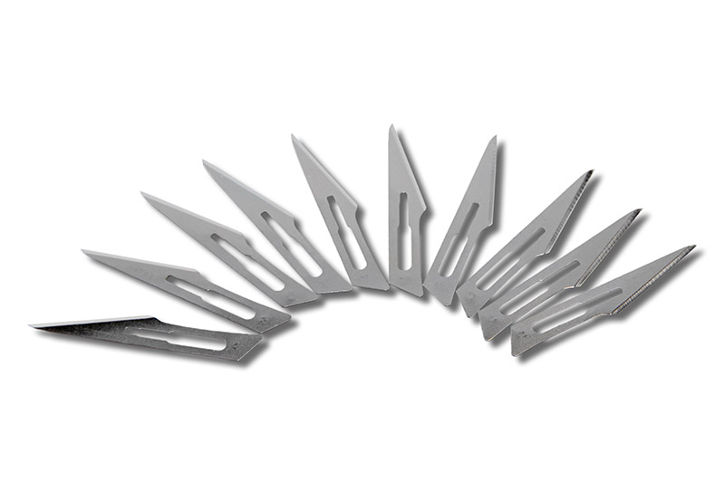 Individually sterile packed blades. Ideal for the finest work, e.g. in 3D cutting techniques or for filigree cutting. The enclosed blade No. 11 has a long triangular blade for elaborate cuts. It is sharpened along the longest side and has a very sharp point.When ordering 1 piece, you will receive 10 individually packaged replacement blades.