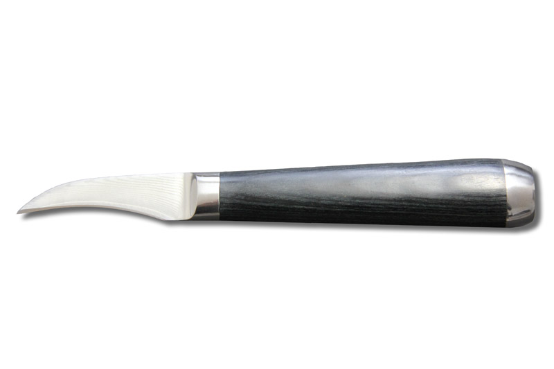 single cut even in thick and sturdy leather is a pleasure.Features:stainless bladesteel - VG10 67 layersHardness ca. 61°HRC for longlasting sharpnessBladeradius: 60 mmBladethickness: 2,0 mmBladewidth: 117 mmHandlelength: 120 mmHandlethickness: 15 mmWeight: 175 gHandlematerial: hybridwood planetree , black fibre layerCaution it is sharp and may shave! Natural wood might differ in grainpattern and colour.For longlasting cuttingedges we recommend the use of a plastic cuttingboard. If you want to learn how to sharpen Roundknifes, visit one of our sharpening workshops.