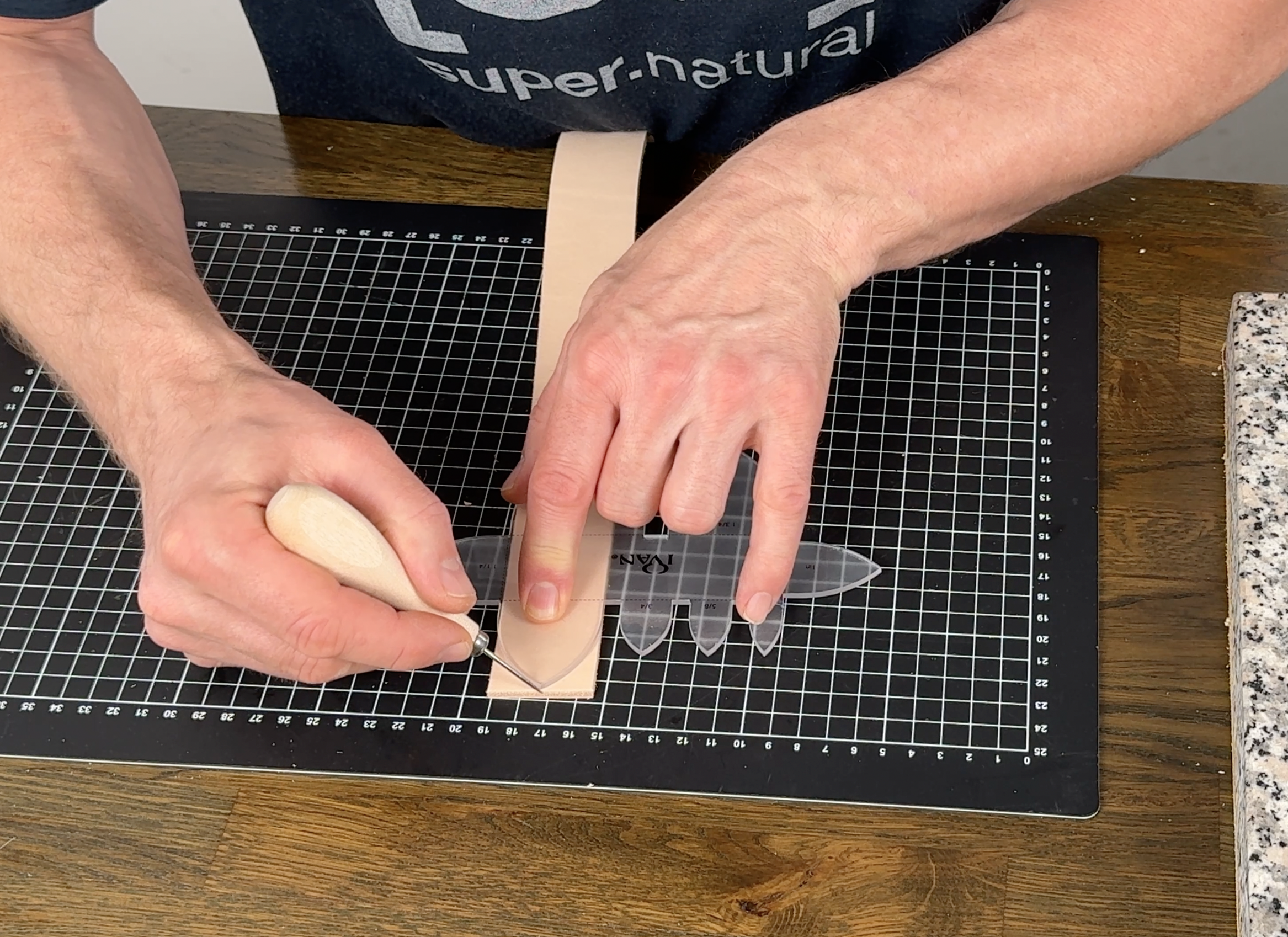Mit diesen Schablonen lassen sich Gürtelspitzen präzise und symmetrisch markieren und anschließen zuschneiden.