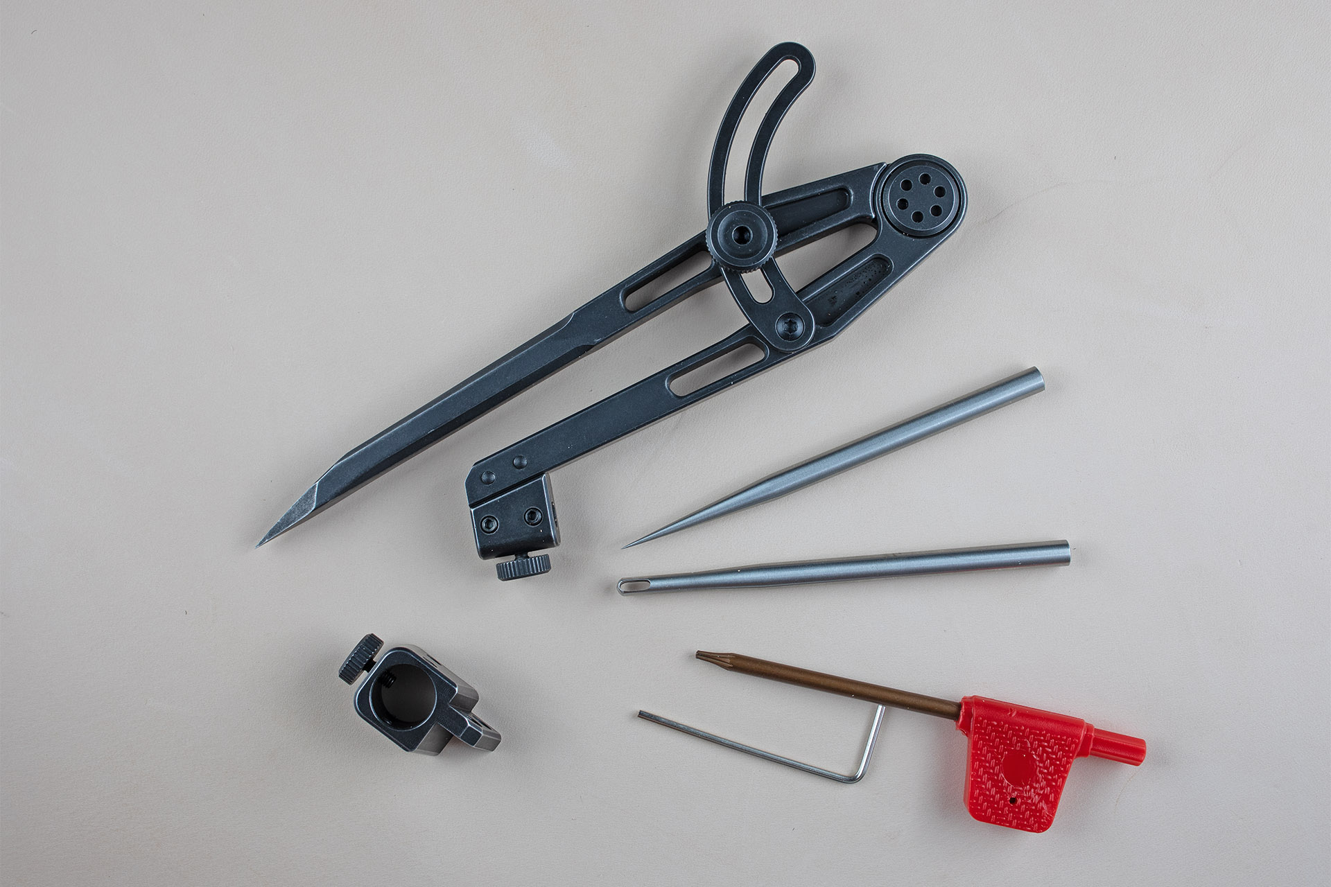 Interchangeable blades with pinpoint- and grooving-blade included. Additional mounting of ballpens, pencils, markees or silverliner.