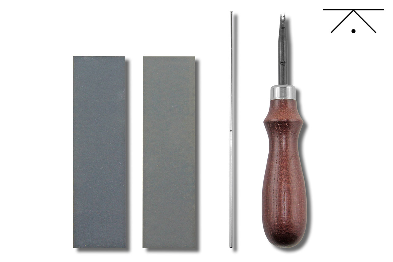You will receive a practical grinding aid for the edger (metal rod + 1x abrasive paper 800 and 1200) for sharpening your edge beveler. This is only suitable for Rickert - Edge Beveler "Pro".