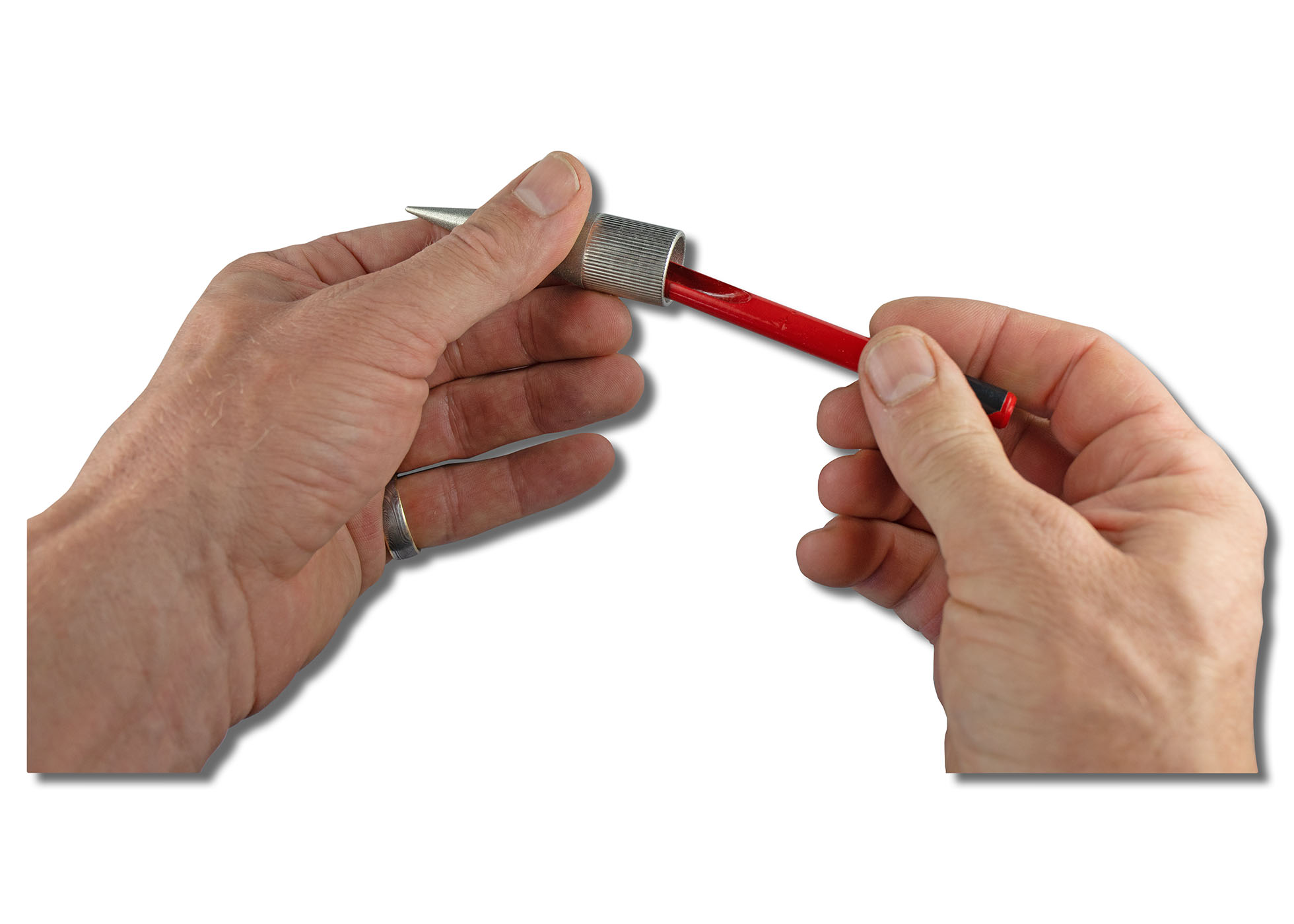 Diamondcoated sharpener for Roundhole Punches - simply insert the punch in or over the cone and twist gently.